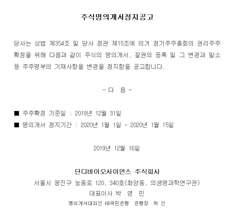 주식명의개서정지공고