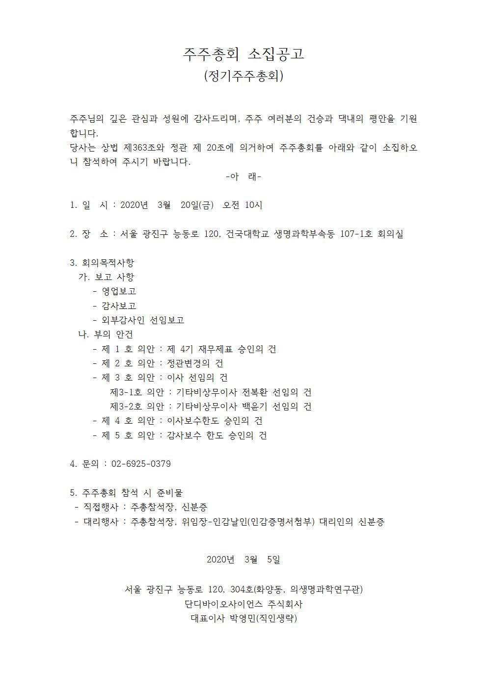 2020년 임시주주총회 소집공고